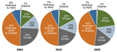Voilà donc la géopolitique mondiale du catholicisme. On imagine aisément comment et pourquoi les conclaves se disputent en termes d’alliances, ne nous le cachons pas, territoriales, ethniques et raciales. Par exemple, on dira que le Pape actuel n’est pas européen, mais on notera qu’il est argentin avec une origine italienne bien établie. Il s’appelle quand même Jorge Bergoglio. L’élite de l’église est à l’image de la géopolitique internationale, là où les Nations se battent pour le leadership partout : football, Onu, etc. Mais l’église catholique est devenue à l’image de la majorité de ces croyants : 42% des catholiques du monde proviennent de l’Amérique latine, terre du Pape François. En 2025 et 2050, les projections confirment que les fidèles catholiques seront majoritaires en Amérique latine, tandis que l’Europe et l’Amérique du Nord verront les fidèles diminuer de plus en plus. L’Afrique quant à elle sera probablement d’espoir de l’église, puisque les fidèles partiront de 13% en 2004, à 16% en 2015, puis 22% en 2050.